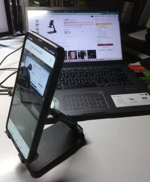 Secure adjustable desktop holder keeps phones and tablets hands-free for work, video calls, reading, and charging